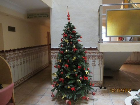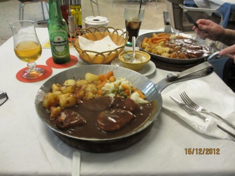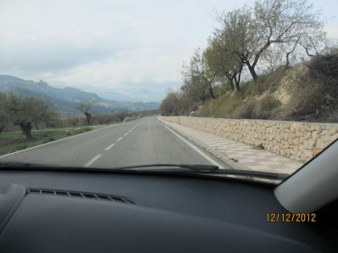 hotellet, der er også rigtig mange drivhuse i Spanien  2 par sko, pris 3 euro, billigt  Bare en af mange flotte og sjove rundkørsler  Flot sandslot, det har nok taget lang tid at lave  Så er der serveret, mørbrad med brasekartofler og god