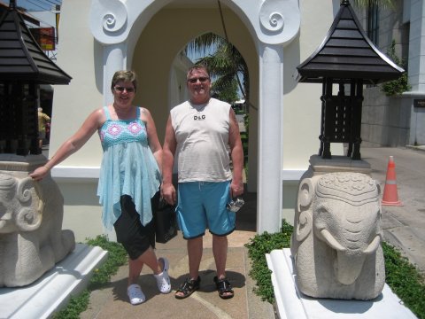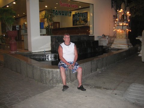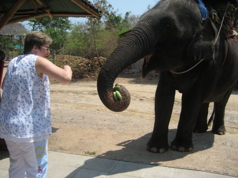 Ta'r en slapper foran Tanawit  Indgangen til det flotte tempel i Hua Hin  Yndigt par ved indgangen til Hilton Hotel  Durion, lugter ad helvede til, men smager godt  Anne-Lise fodrer Elefanten  Typist Thailandsk bolig på landet  Der er ikke så meget i vognen endnu, med det skal der nok komme, med de priser  Niels og jeg, kigger på et eller andet, kan ikke lige huske hvad det var