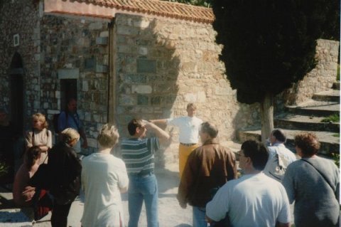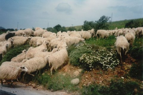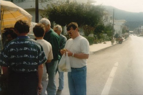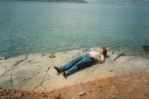 Udsigten fra vores værelse På Hotel Horizon  Poolen, kunne ikke rigtig bruges, da det jo er April måned  Anne-Lise er betaget af citrontræet  Restaurant i Lounda, som vi spiste på  Vi havde selvfølgelig lejet en bil, og blev mange gange opholdt af fåreflokke, som jo skulle over vejen  Her køber jeg friske bananer  Anne-Lise tager sig en slapper på klippen  Her er vi på tur ud på spedalskhedsøen, Spinalonga  Horizon, som vi boede på var et dejligt stille hotel, med et flinkt ældre værtspar  En dejlig velkomst af vores dejlige Collie, Ricco, som desværre ikke er mere, han blev 13½ år, så kunne han ikke mere