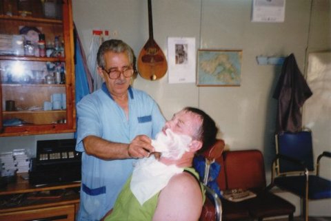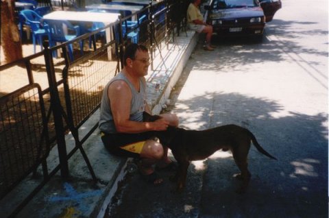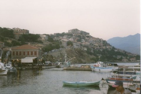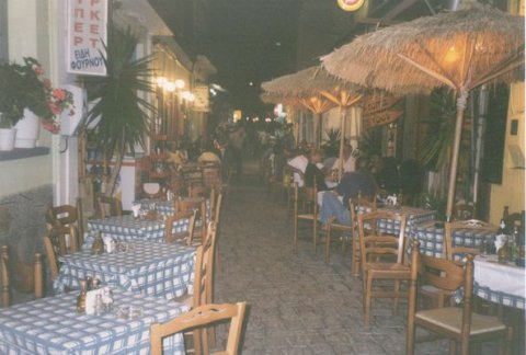 Vi boede i Petra, på nordkysten, udsigten fra værelset, ikke noget at prale af, men der var da havudsigt  Men en flot solnedgang, det så vi hver aften  Et kig ud over vandet, fra molen i Petra  Vi mødte en af Anne-Lise's gamle skolekammerater, det var jo rigtigt hyggeligt, og et mærkeligt sammentræf Dorte og Palle fra København  Udsigt over havnen i Petra, hvor vi boede  Billedet taler for sig selv  Det samme om dette billede  Der var altid noget at kigge på  Slagterforretning, hvor de slagtede dyr hænger udenfor butikken  Et kig op ad restaurantgaden, hvor vi spiste de fleste dage  Anne-Lise fandt selvfølgelig en butik med alt muligt skrammel, som hun ikke kunne holde fingrene fra :-)  Der var en del hunde, meget fredelige, og de ville gerne have lidt opmærksomhed  Jeg skulle da lige prøve byens barber, han var meget omhyggelig, sådan en barbering holder næsten 2 dage
