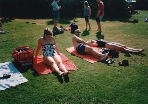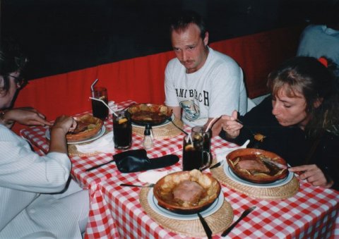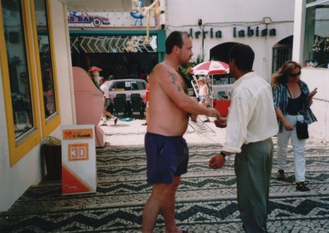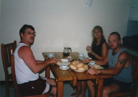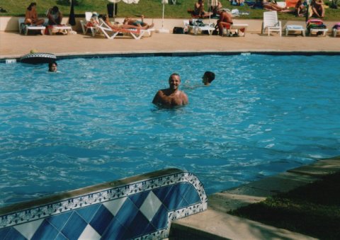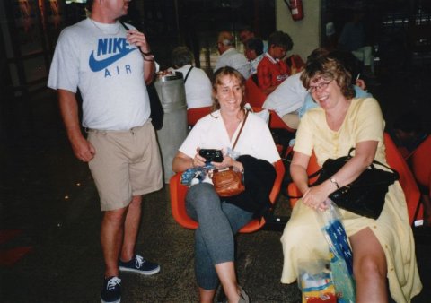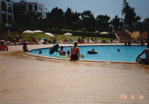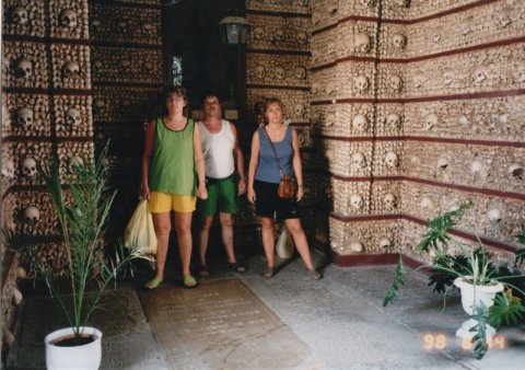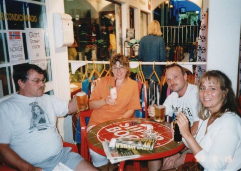 kan ikke lige huske hvad det kostede, men det var da ikke så dyrt  Ja så er vi på det store indendørs marked, det lugtede ikke særligt godt  Så vi satte os udenfor, og nød en tår øl og sodavand  og der var optræden af lokale folkedansere  Hvad mon Anne-Lise tænker på  Flot udsigt ud over poolen  Der skulle da købes lidt ind  Vi var en hel del nede ved havnen, der skete jo noget hele tiden  Og stranden, selvfølgelig, den var da ogso rigtig god  Og i badeland var vi sandelig også  Pigerne hyggede sig rigtig  Det var meget varmt, så vi slappede rigtig af i solen  Lidt "handel" havde Frank da gang i  Lidt sjov skulle der da også være tid til  Maden var rigtig god, men Frank kigger godt nok lidt :-) , men han spiste da det, såvidt jeg husker  Her venter vi på noget at spise  Og vi skulle da også smage deres coktail's, de var rigtig gode, og billige  Vi besøgte en lille kirke, som var bygget op af kranier  Ja det blev jo også tid til at vi skulle hjem  Venter på udkald til flyet  Hjemme i Danmark igen, efter en rigtig dejlig ferie, Min broder Jan hentede os selvfølgelig.