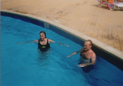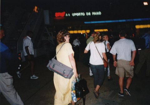 Vi fik min broder Jan til at køre os i lufthavnen.  Så er det afsted til gaten.  Landet i Faro, og på vej ud til bussen som skulle køre os til hotellet  Det var nogle rigtig dejlige lejligheder, som vi havde fået, de var næsten helt nye.  Lidt hygge ved morgenbordet  Anne-Lise skulle lige have sat krøllerne  Der var simpelthen er rigtig lækker pool, som vi benyttede en hel del  Ser det ikke lækkert ud ??  Frank og Britta hyggede sig rigtigt  Anne-Lise skulle lige mærke på vandet, inden hun skulle i  Vi brugte poolen rigtig meget  Selvfølgelig skulle vi også ud at køre Gokart.  Der var en rigtig god Gokartbane  Lidt kamp om pladserne var der da:-)  Det var så det løb, man får jo ikke så mange omgange for pengene