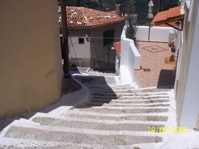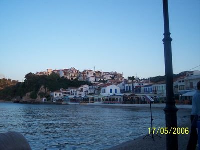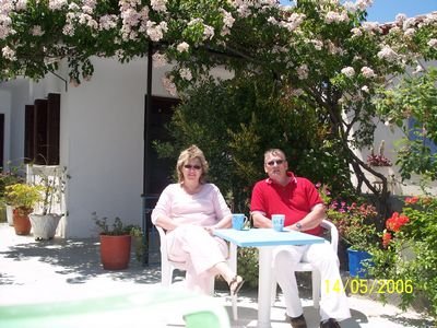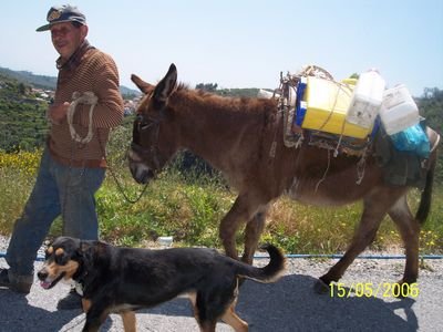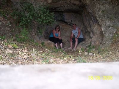 Ankommet til Samos lufthavn  Så skal vi bare finde den rigtige bus  Ju hu Bent, jeg sidder her nede :-)  hygge foran vores lille lejlighed  En lille havn, Vathi som ligger overfor Samos by  Så skal der provianteres, vand skal der til  Typisk græsk bonde, med æsel og hund  En typisk græsk kirkegård på Samos  På en af vores ture rundt på Samos, fandt vi denne dejlige strand  Er det ikke en smuk udsigt  Havnen i Kokari, byen hvor vi boede  Et lille alter i en grotte, under jorden  Her sidder vi og hygger i et hul i klippen  En lille hyggelig by, kan ikke huske navnet  Der er meget stejle trapper i byen