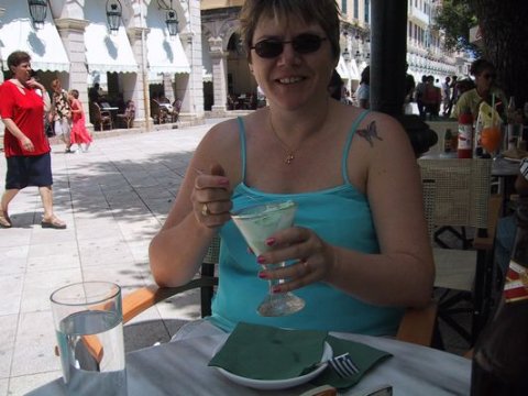 Afgang til Corfu, med Apollo Rejser  Det var et udmærkrt værelse vi fik  Anne-Lise tager en kigger ud over havet  En gammel borg som ligger i indsejlingen til Corfu by  Det var simpelthen den bedste Plankebøf, vi nogensinde havde fået  Også her en flot udsigt, bare nyd det  Anne-Lise nyder en is, tror jeg  Deres vandledninger er et værre roderi at se på, som Blikkenslager, fra Danmark :-)  Æslerne må da arbejde hårdt for føden  En lille ø, hvor der er et lille kloster  Igen den bedste Plankebøf, har simpelthen ikke smagt nogen andre steder, som var lige så god, samtidig var den enorm stor :-)