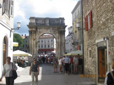 Så nåede vi til Zagreb, det tog kun 1½ time  Der er mange af denne slags tunneller, den længste vi kørte igennem var 5,3 Km  Fremme ved hotellet, der var mange biler  Vi havde en rimelig god udsigt fra vores lejlighed  En lille hyggelig havn, med mange flotte både  Det tager ca. 3 timer at grille en pattegris  Hyggelig lille restaurant  Flot udsigt ud over Limski Kanalen  Rabac, en lille hyggelig by som vi besøgte  Vores menu, en slags frikadeller, men med oksefars, smagte udmærket sammen med en kold øl  Der er mange vinmarker i Kroatien  Den originale Triumpbue i Pula  Hyggestund ved havnen, selvfølgelig med en kold pilsner  Vi var nede i en grotte, der var 66 meter til bunden  Der var meget fugtigt dernede  Det flotteste klare vand i nærheden af vores hotel
