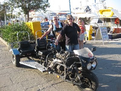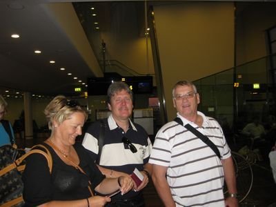 Lisette - Bjarne og Bent i lufthavnen  Udsigten fra hotellet i Rhodos by  Så trængte vi til en lille drink, her i varmen  Guldsmeden vi besøgte, og købte lidt hos  Flot springvand, der konstant skiftede farve  Bent & Bjarne ved en speciellavet motorcykel  Udsigt ud over den hvide by  På vej ind i den gamle by  Rigtig hyggelig restaurant  Bjarne & Lisette i lufthavnen på vej hjem  Anne-Lise & Bent i lufthavnen også på vej hjem