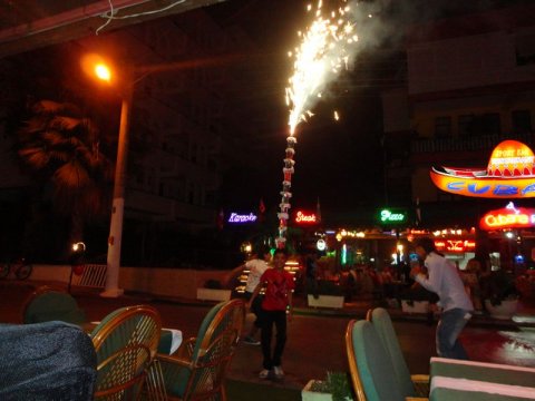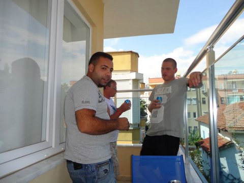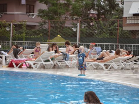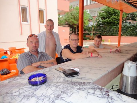 Så starter familieferien til Alanya  lidt afslapning inden flyveturen  Jasmin & Ruben er klar til poolen  En af de mange moske'r i Alanya  Børnebørnene i deres rette element  Bent og drengene er gået i baren  Bent "ødelægger" bussen :-)  Desværrer kom Frank ikke til at ligne Elvis  Her er der en rigtig mavedanserinde  Et flot skib på Alanya havn  Så blev jeg sgu lige pensionist  Vi holder fødselsdag for farfar  hygge med flag og det hele  4 skønne unger hygger i sofaen  Mandehygge på Adam's altan  Ja så fik vi lige en kæmpe regnskylle  for at slutte af med 10 glas og fyrværkeri  Ruben ser lidt opgivende ud  Ja, så er det slut på en god ferie med hele familien