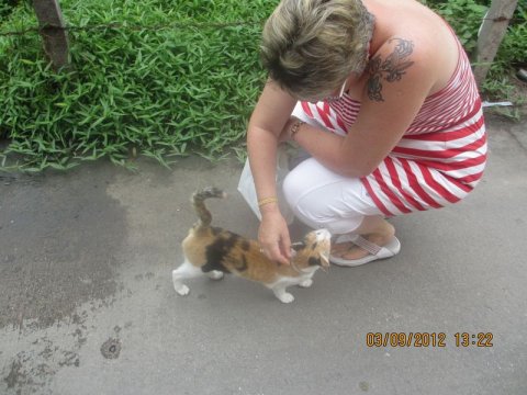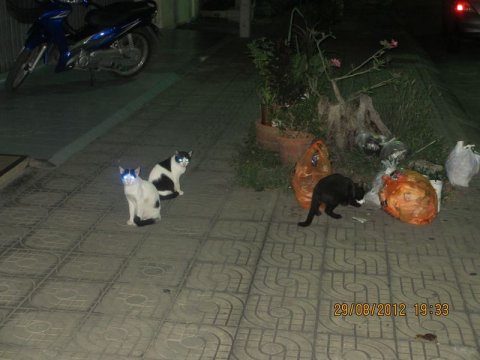 i vinduet hos skrædderen ved Tanawit  Dette er butikken, Veena Tailor  Gensynsglæden var stor da vi mødte Charlee  Kattene roder i skraldespandene om aftenen  Der skulle lige fjernes noget hård