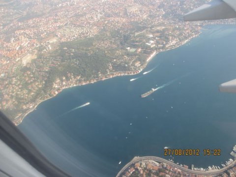 Så er vi på vej til Thailand  Et vue udover Bosborus strædet, vi skulle mellemlande