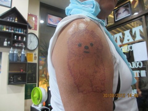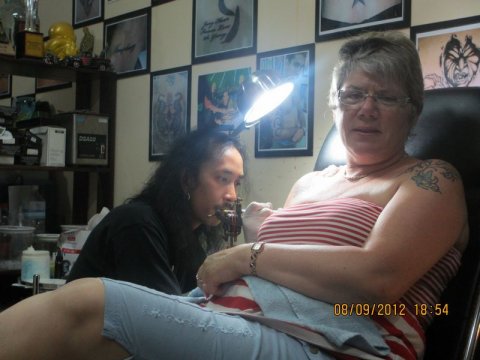 hud :-)  og nymalede negle til fruen  Så fik Bent syet nyt tøj igen :-)  Vi fandt vores tatoovør, fra sidste gang
