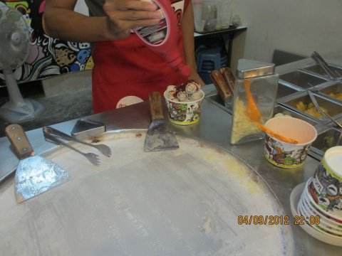 En speciel måde at lave is på  isen smagte faktisk rigtig godt  Ikke alle steder sætter man æg på køl  Der var ikke så mange kunder. så man kan jo