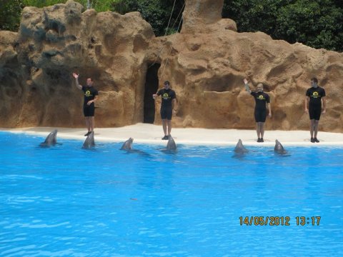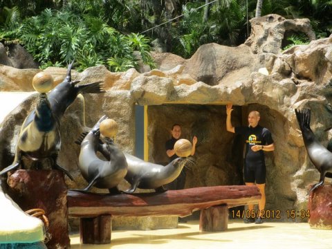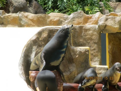 på de næste billeder  Så var det tid til Delfinerne  Det var et rigtigt flot show  Så var det Søløvernes tur  Balancekunst, de er rigtig sjove  Hvem kan først regne den ud ?  T.Bone steak på 700 g, den var rigtig god  Hjemme i Kastrup skulle vi jo lige have en pølse