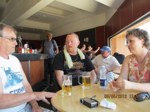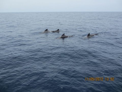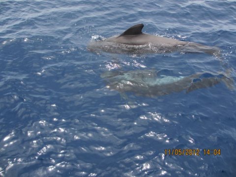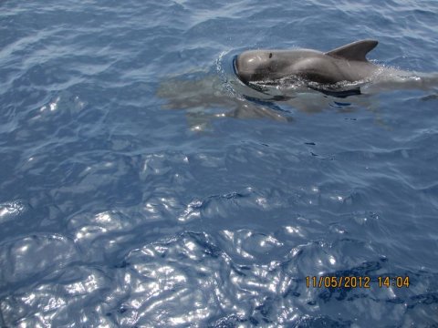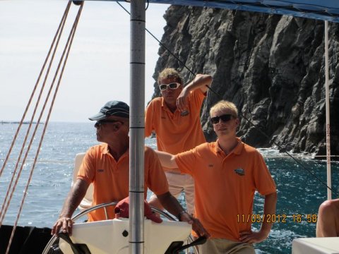 når springvandet var igang  Så skal vi ud med en catamaran, og lede efter hvaler  Som I kan se, så fandt vi dem  der var rigtig mange Grindehvaler  de lever sammen i flokke på op til 6-8 hvaler  Ah, en dejlig kold pilsner :-)  Besætningen på Mustcat, som båden hed  Hygge på balkonen, sammen med Sussie & Jan,