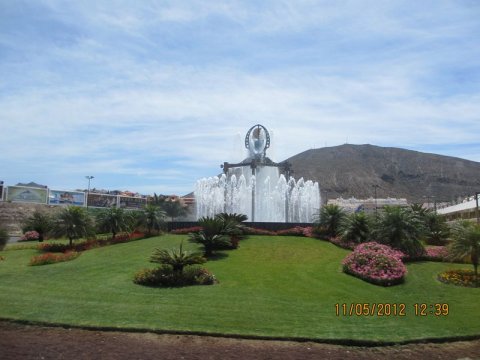 Udsigten fra vores balkon  Anne-Lise og hendes ven :-)  Der er rigtig mange flotte rundkørsler på Tenerife,