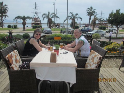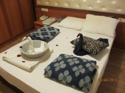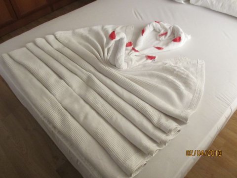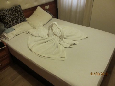 været mere rigtigt.  Det røde tårn i Alanya, som er byens varetegn  Hygger i det gode vejr, nede på havnekajen  Hvor der ligger en masse gamle skibe, som er meget flotte  En kæmpe kaktus, midt på gaden  Flot dekoreret bryllupsbil  Rengøringsdamen var rigtig god til at pynte vores seng  Et besøg i en drypstenshule  også her, flot er der dernede  Flotte sejlskibe, dem var der mange af i Alanya  Hos Joseph, men prisen var ikke lav  Rengøringsdamen pyntede vores seng hver dag, flot  Hovedindgangen til Hotellet  Vi tog bussen en tur til Side, her er stranden, ikke mange badende  Masser af toiletskåle som pynt i en have i Side  Den sidste dag blev vores seng pyntet rigtigt flot  Selv håndvasken blev pyntet